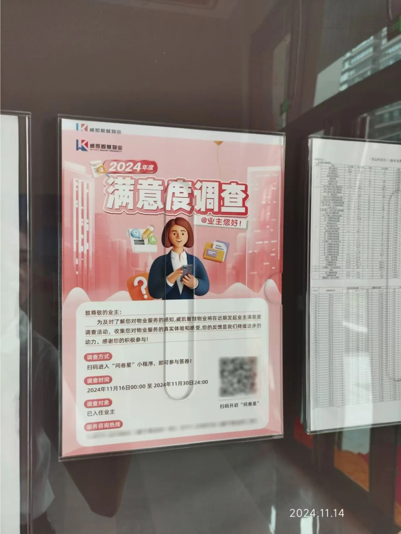 为了精准洞悉业主所需,深挖物业服务的关键痛点,威凯智慧物业发起问卷调查,诚邀业主做评价、提建议、促决策。问卷围绕日常物业服务、设施维护、社区活动等多维度展开,覆盖业主生活的方方面面。