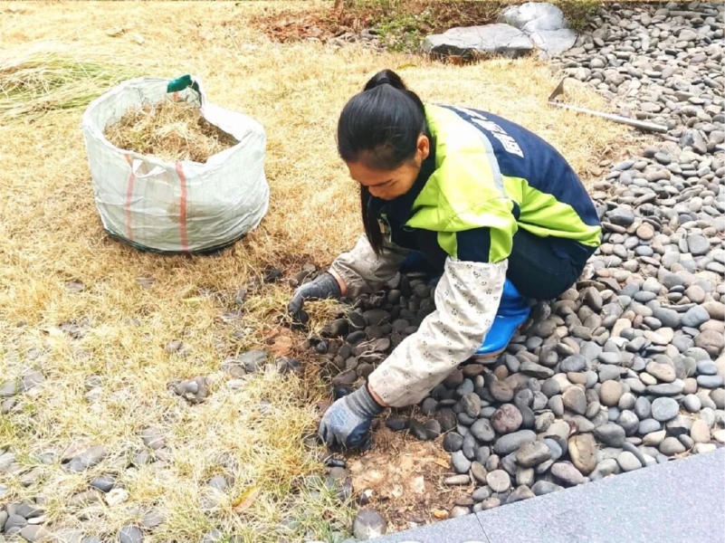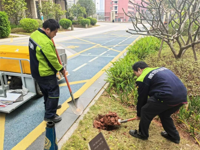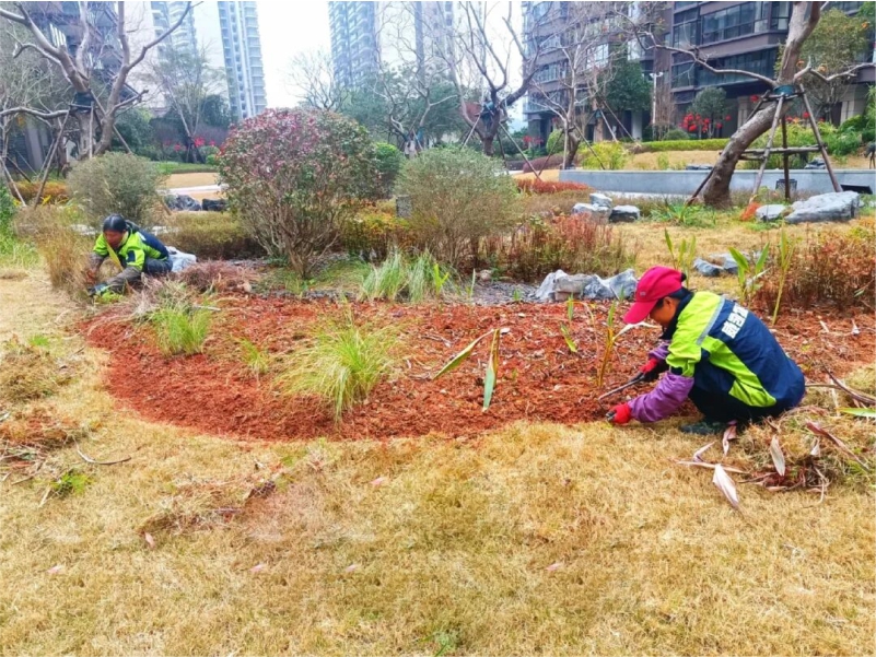 针对缺株、黄土裸露和草坪退化等问题,进行了细致的移栽补种、绿植修剪,让园区内的花草绿植焕发出新的生机,为整个园区增添了更多色彩。