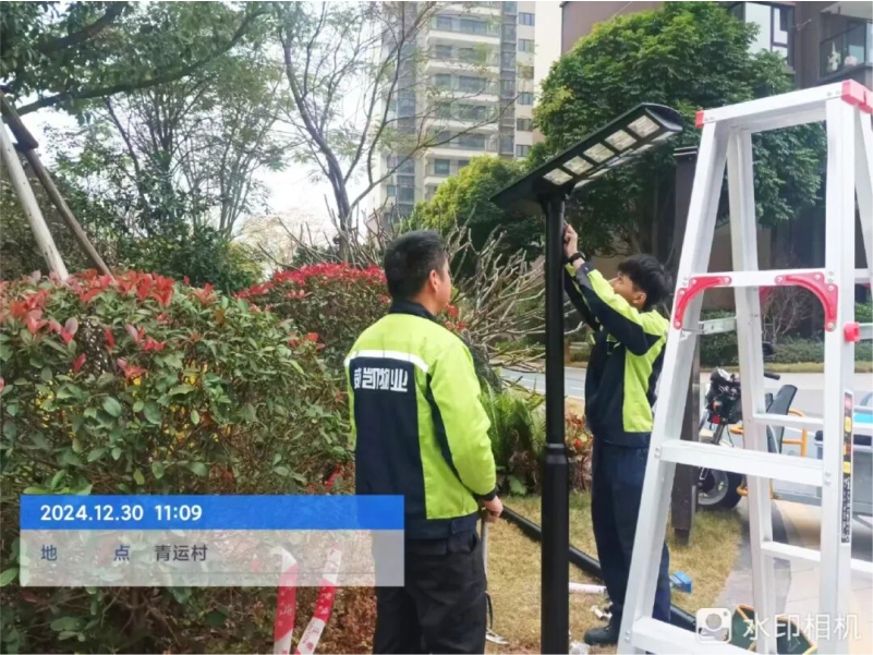 在公共区域增设大瓦数太阳能灯,提升照明效果的同时,实现绿色节能。