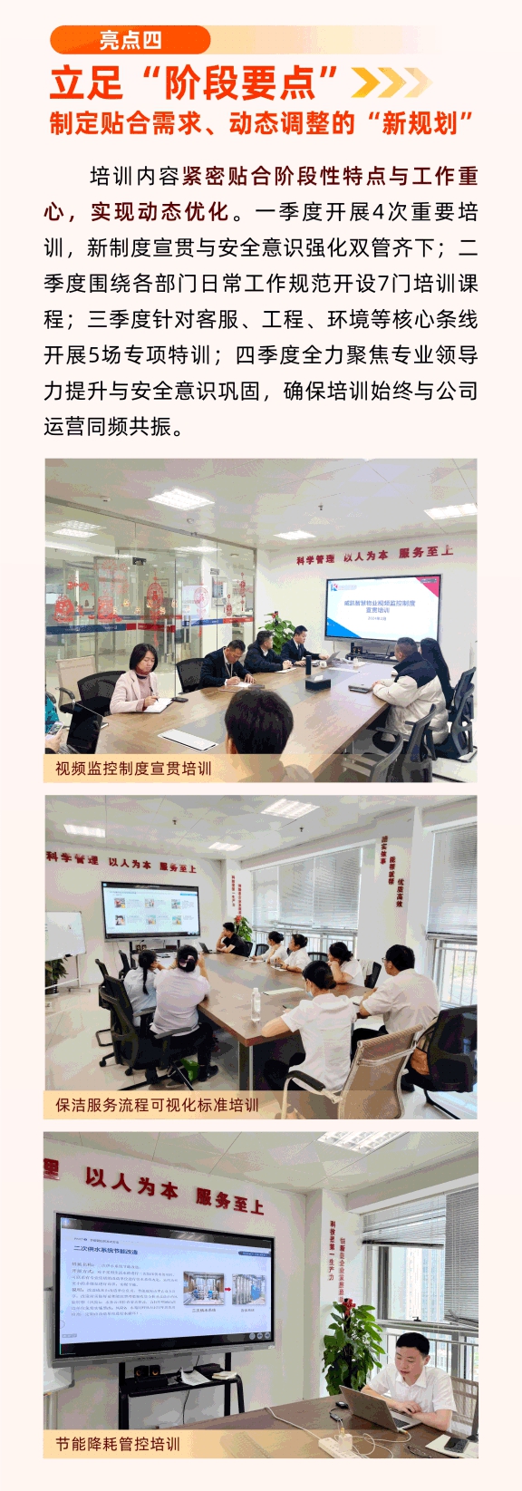 自2024年11月起,威凯智慧物业 “美好家园计划”品质提升行动启动,聚焦安全、环境、服务、智慧、标准5大板块,通过190项品质提升行动,为6个住宅小区、5000余户家庭开启了一场从“安居”到“优居”的温暖蝶变。2025年,这场家园焕新行动持续深化——归家路途更安心,居住环境更温馨,物业服务更舒心,是威凯用匠心写就的“焕新日记”。 30余场标准化培训:采用理论讲解与实操演练相结合的方式,覆盖工程、保洁、保安、客服四大岗位,确保“人人懂标准、讲标准、用标准”。 ▷工程团队通过 “每日 6